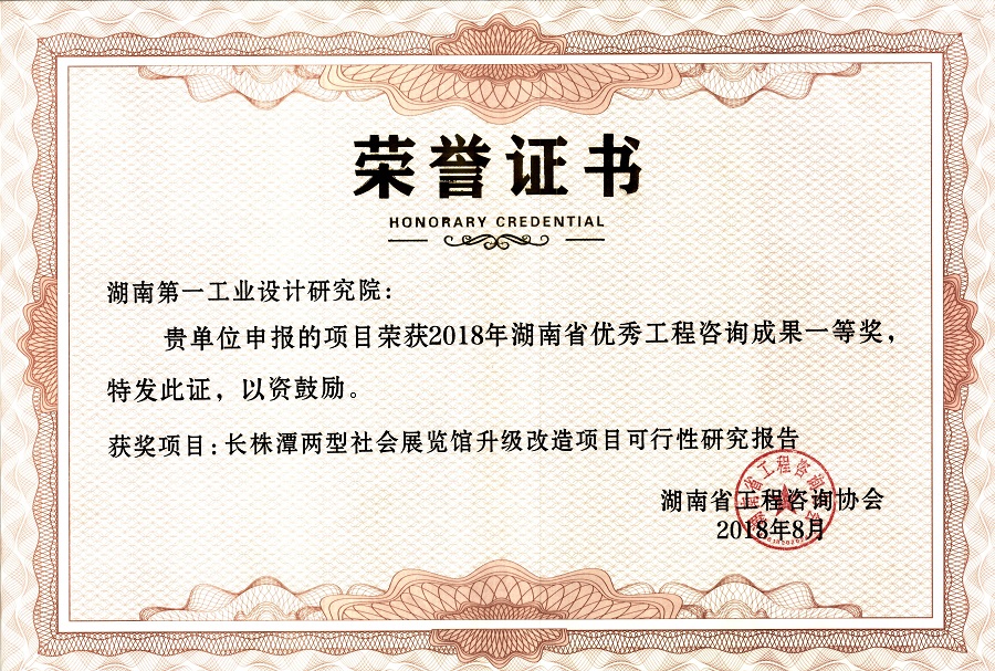 湖南省優(yōu)秀設(shè)計(jì)表揚(yáng)金獎(1984)